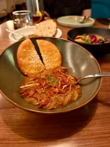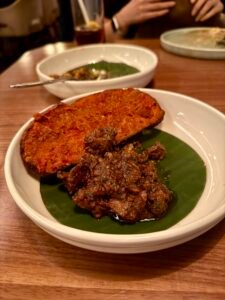 The bheja masala and liver masala reminded me of Bohri Mohalla’s street carts in terms of spicing, texture, and the presence of ‘tari/rogan’ (oil). They were served on attractive Fab India meets Nicobar plates, not on boulders or bowls of rajma!
