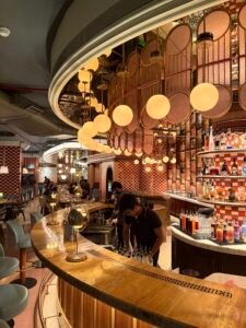 We entered Comorin, located in what used to be K’s office complex during her time at JWT. We found ourselves in a stylish yet sophisticated setting, well lit (though not Instagram-worthy). Her only complaint was that the temperature was a little too cold. I agreed. We were guided to a booth at the end of the seating area. You were part of the restaurant, yet there was a sense of intimacy. We could hear each other speak, and we saw people across the tables happily chatting as they dug into their food. It was not one of those wildly loud places; it was a spot for grown-ups.